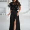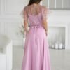 Elegant dress with thin straps, made of lightweight material, complemented by a shiny sequin bolero with a rose on the belt. The shiny finish adds elegance and shine to the styling, making it the perfect choice for evening outings and special occasions. The dress is fastened with a concealed zipper, making it easy to put on and take off the outfit.