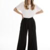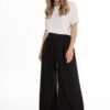 Elegant trousers with wide legs in a modern, loose cut. The high waist beautifully emphasizes the waist, and the front pleats give the silhouette lightness and an elegant character. Loose legs softly drape in motion, providing comfort and a stylish look. The model will work well in both everyday stylizations and more elegant sets, with a T-shirt, shirt, or blazer. It is a timeless style that can easily be matched to many occasions.